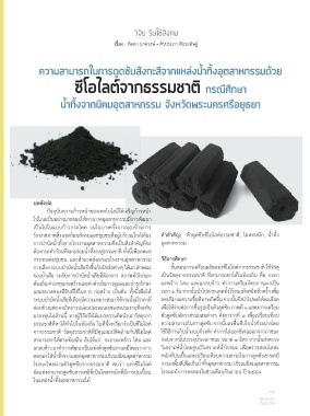 แกลบขา้ ว มาทำ� การพฒั นาเปน็ แทง่ ตวั ดดู ซบั สารเคมโี ดยจากการ โรจนะท�ำการทดลองในช่วงเดือนกนั ยายน ปี ๒๕๕๘